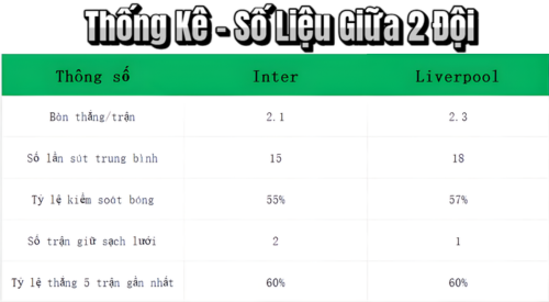 Hai đội từng gặp nhau một số lần tại đấu trường châu Âu, và kết quả thường khá cân bằng. Liverpool từng chiếm ưu thế trong quá khứ, nhưng Inter hiện tại đang mạnh hơn đáng kể so với chính họ vài năm trước.