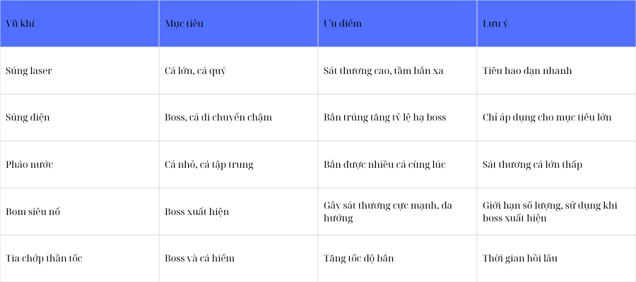 Bản hướng dẫn này giúp bạn nắm vững chiến thuật, kho vũ khí, mẹo săn cá và cách tăng tỷ lệ trúng thưởng lên tới 90%.