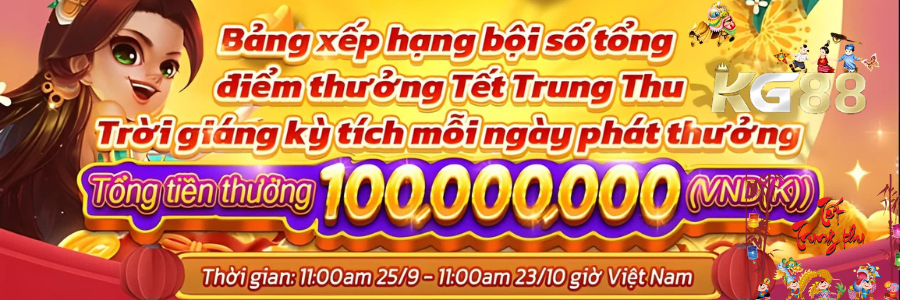 🌕 KG88 Trung Thu 2025: Chinh Phục Bảng Xếp Hạng Tổng Điểm Thắng Trung Thu – Săn Ngay 100 Triệu VNĐ!