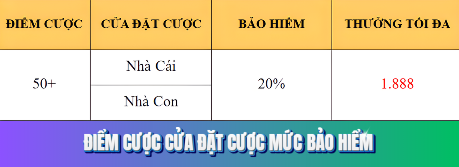Chương trình áp dụng cho các vé cượcBaccarat tại Casino KG88 (ngoại trừ sảnh EVO). Khi người chơi đặt cượcNhà Cái hoặc Nhà Convà kết quả ván bài là8 điểm thua 9 điểm, hệ thống sẽ áp dụngbảo hiểm 20% tiền cược, vớimức thưởng tối đa lên đến 1.888 điểm.